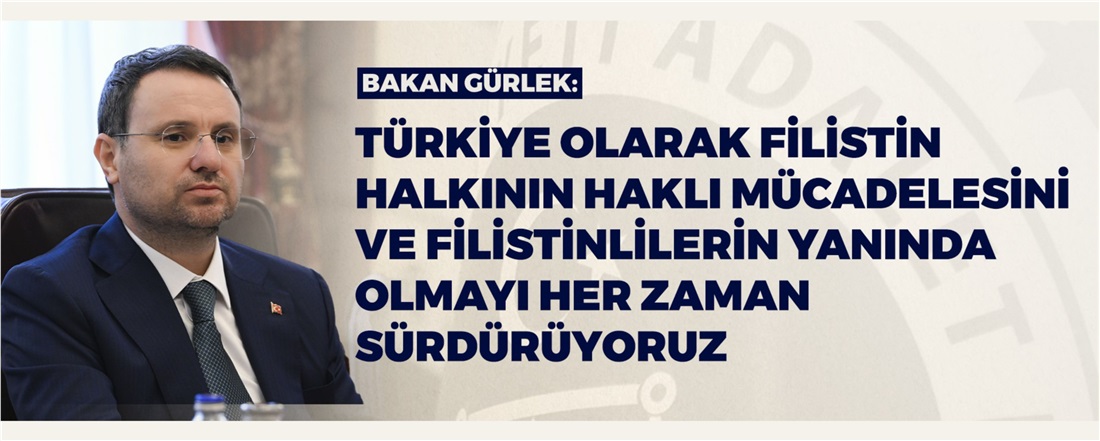 BAKAN GÜRLEK: TÜRKİYE OLARAK FİLİSTİN HALKININ HAKLI MÜCADELESİNİ VE FİLİSTİNLİLERİN YANINDA OLMAYI HER ZAMAN SÜRDÜRÜYORUZAdalet Bakanı Akın Gürlek, Slovenya Ulusal Meclis Başkanı Urska Klakocar Zupancic ile görüştü. Bakan Gürlek, “Türkiye olarak her koşulda insan onurunu, barışı ve adaleti savunmaya devam ediyoruz. Filistin halkının haklı mücadelesini ve Filistinlilerin yanında olmayı her zaman sürdürüyoruz" dedi.